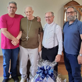 Em clima de alegria pascal, uma comitiva de religiosos linense fez uma visita especial a Dom Irineu Danelon, por ocasião de seu aniversário, celebrado no último dia 4. Foi um momento de fraternidade, gratidão e comunhão, marcado pela presença de bispo diocesano, Dom João Gilberto de Moura, e dos padres Teddy e Mauro André, que levaram pessoalmente os votos de feliz Páscoa e de muitas bênçãos ao estimado bispo emérito.